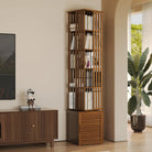 Yowosの回転式本棚は、縦格子の中空デザインを採用し、本、マンガ、CD、DVDなどを収納できるスペースを提供します。360度回転するデザインにより、従来の据え置き型本棚に比べて、どの方向からでも簡単に本を取り出せます。丸型の回転式本棚よりも角や縁を有効活用しているため、よりコンパクトに本を並べることができます。竹材を使用し、クラシックなウォールナット仕上げで、ミッドセンチュリースタイルの本棚です。子供用本棚、CDタワー、DVDタワー、拡張式本棚など、どんな用途にもお使いいただけます。お部屋をすっきりと落ち着いた空間に整え、究極のストレス解消本棚として活躍します。
