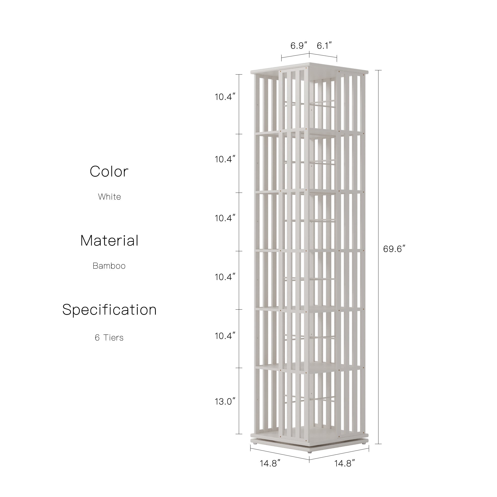 YOWOS Vortexシリーズ Meridian 360°回転式本棚 竹製 ホワイト 6段