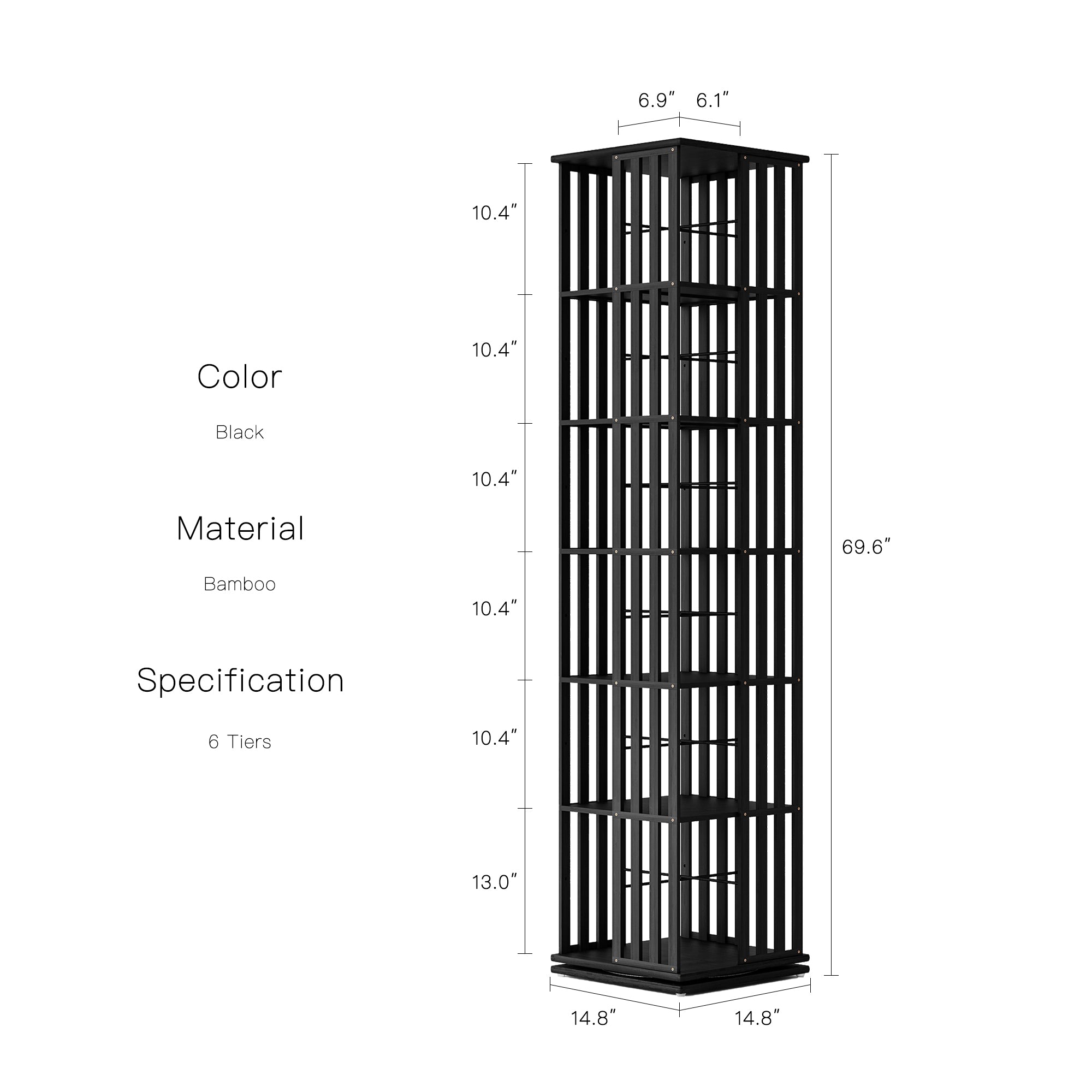 Dimension: 14.8"D x 14.8"W x 69.6"H