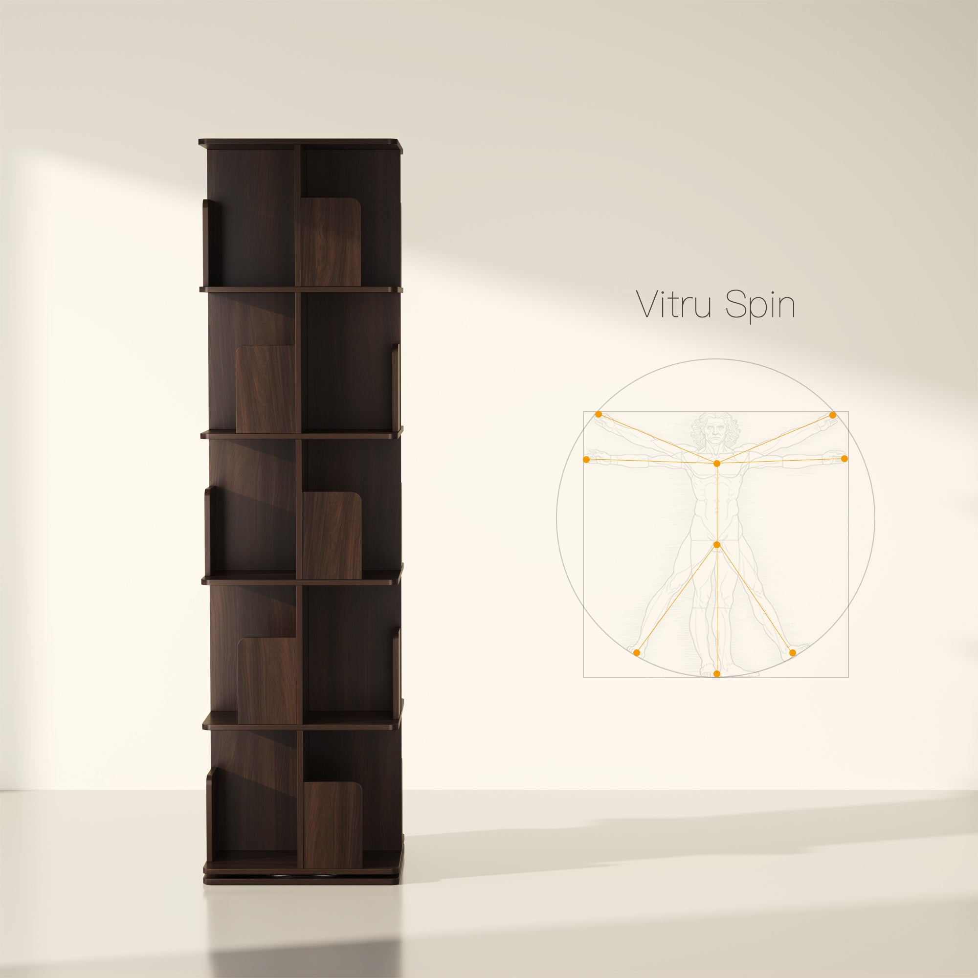 YOWOS Vortexシリーズ Vitru Spin 360°回転式本棚 木製 ウォールナット 5段