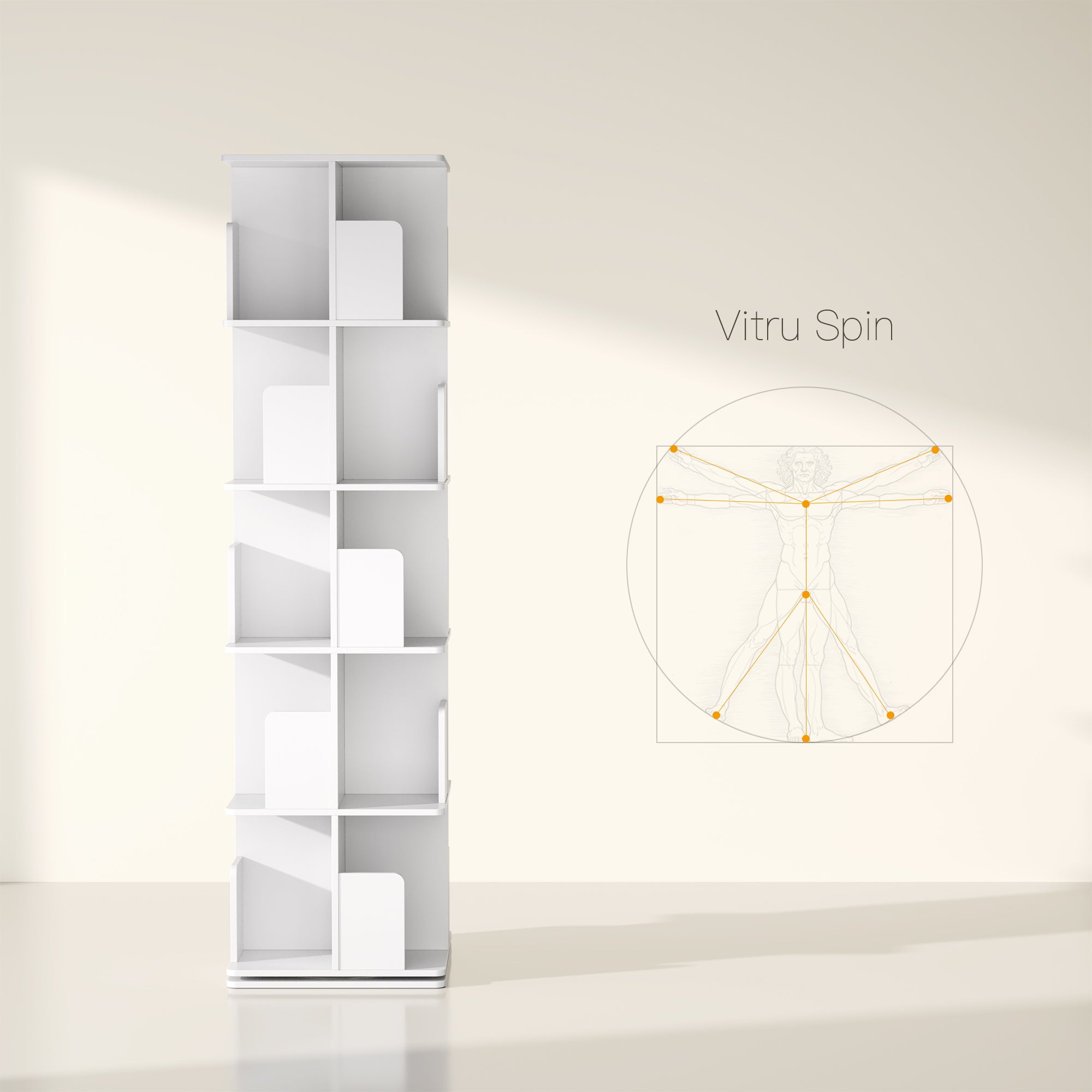 YOWOS Vortexシリーズ Vitru Spin 360°回転式本棚 木製 ホワイト 5段