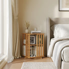 Yowosの回転式本棚は、縦格子の中空デザインを採用し、本、マンガ、CD、DVDなどを収納できるスペースを提供します。360度回転するデザインにより、従来の据え置き型本棚に比べて、どの方向からでも簡単に本を取り出せます。丸型の回転式本棚よりも角や縁を有効活用しているため、よりコンパクトに本を並べることができます。竹材を使用し、クラシックなウォールナット仕上げで、ミッドセンチュリースタイルの本棚です。子供用本棚、CDタワー、DVDタワー、拡張式本棚など、どんな用途にもお使いいただけます。お部屋をすっきりと落ち着いた空間に整え、究極のストレス解消本棚として活躍します。