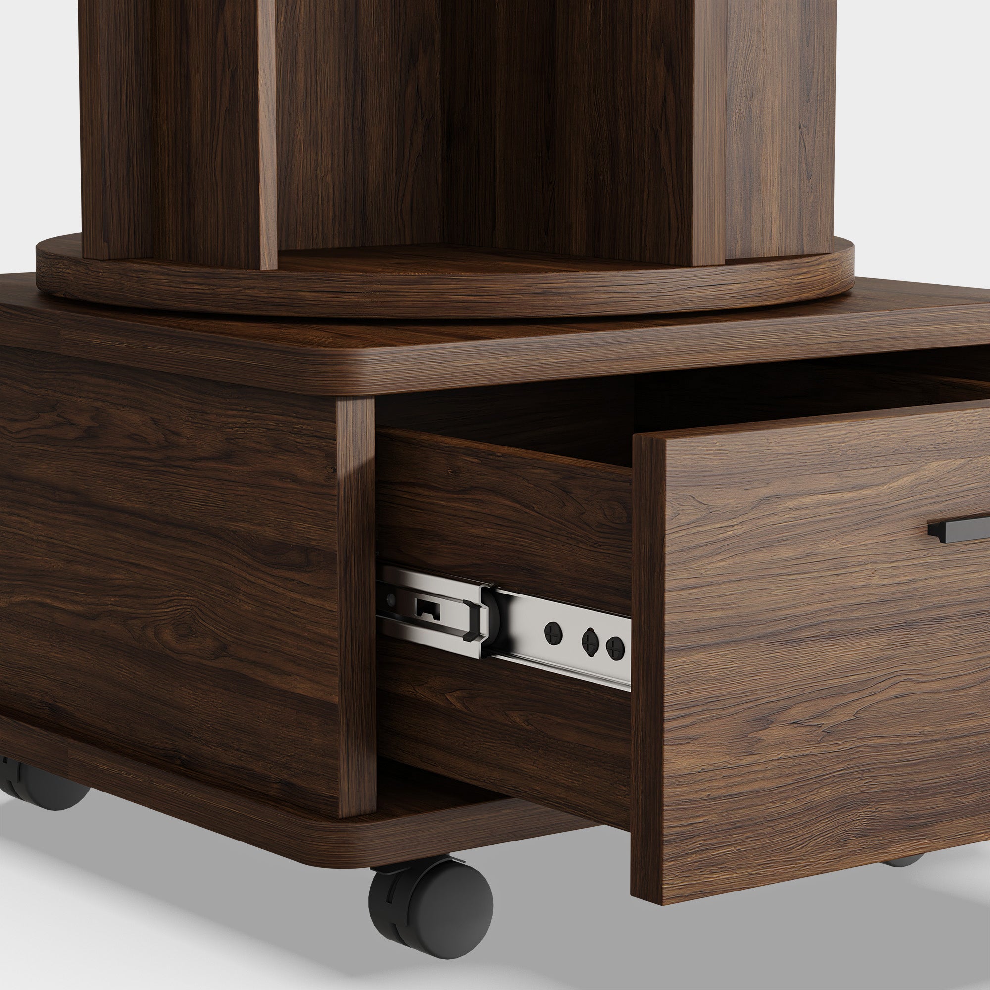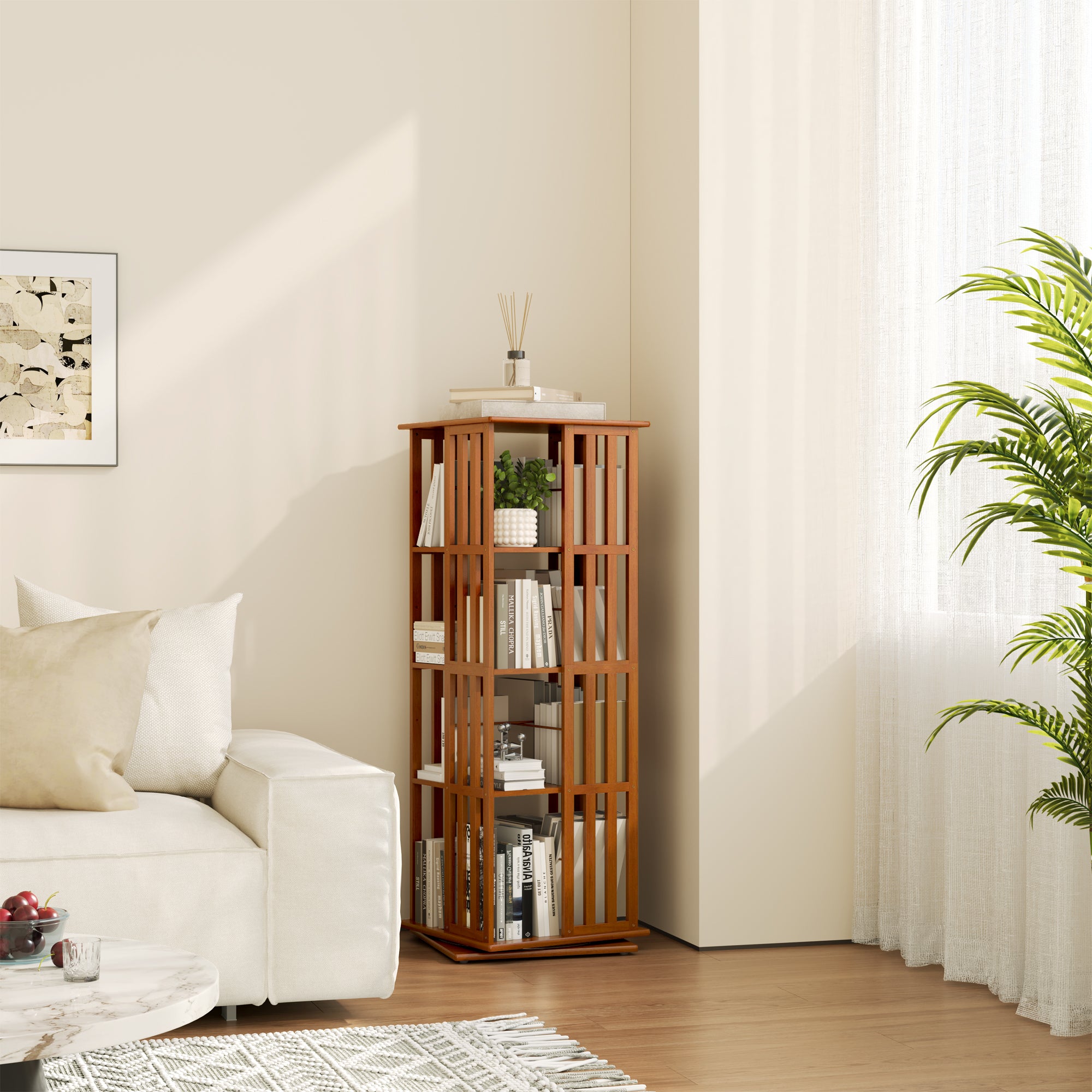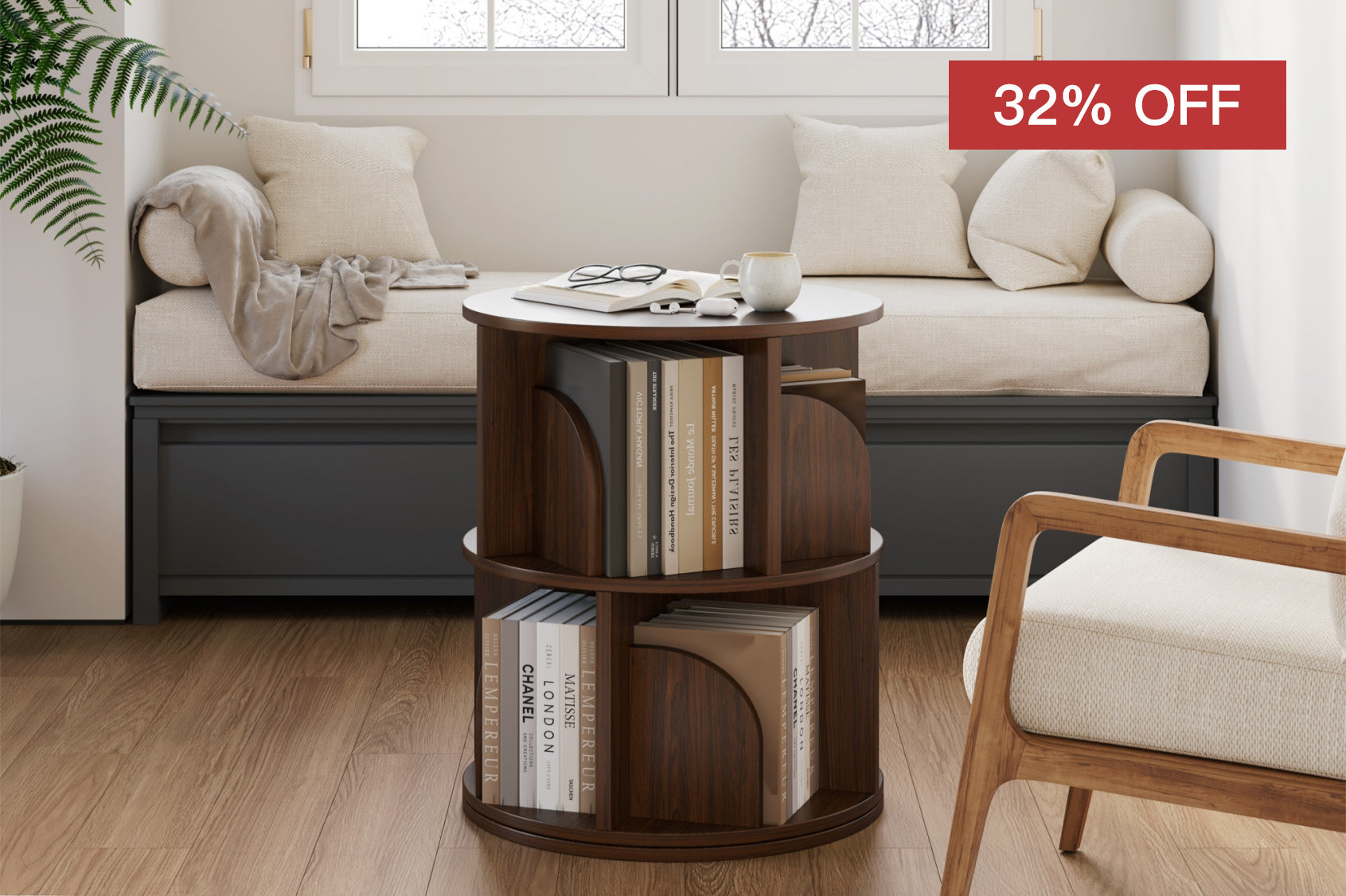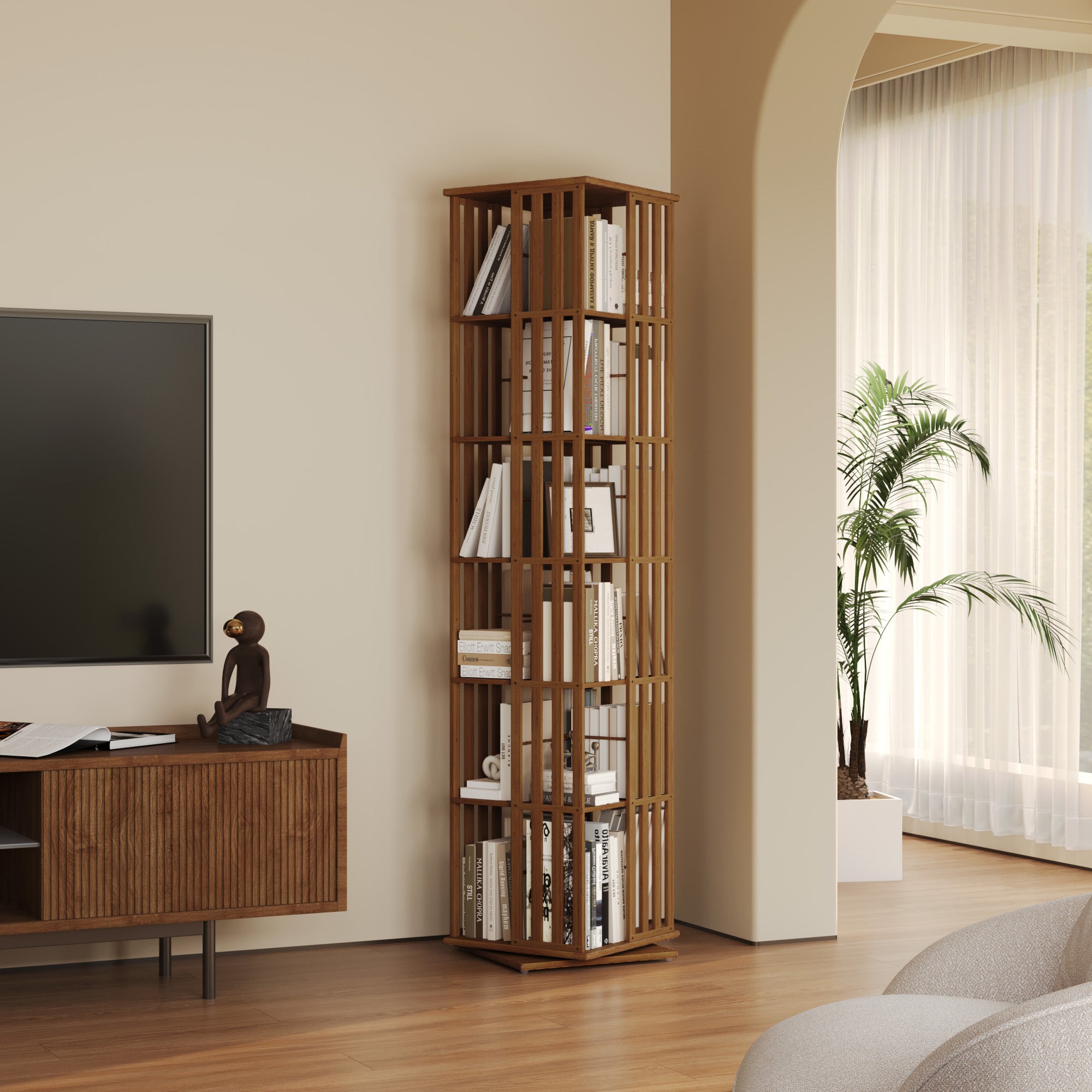 Yowosの回転式本棚は、縦格子の中空デザインを採用し、本、マンガ、CD、DVDなどを収納できるスペースを提供します。360度回転するデザインにより、従来の据え置き型本棚に比べて、どの方向からでも簡単に本を取り出せます。丸型の回転式本棚よりも角や縁を有効活用しているため、よりコンパクトに本を並べることができます。竹材を使用し、クラシックなウォールナット仕上げで、ミッドセンチュリースタイルの本棚です。子供用本棚、CDタワー、DVDタワー、拡張式本棚など、どんな用途にもお使いいただけます。お部屋をすっきりと落ち着いた空間に整え、究極のストレス解消本棚として活躍します。