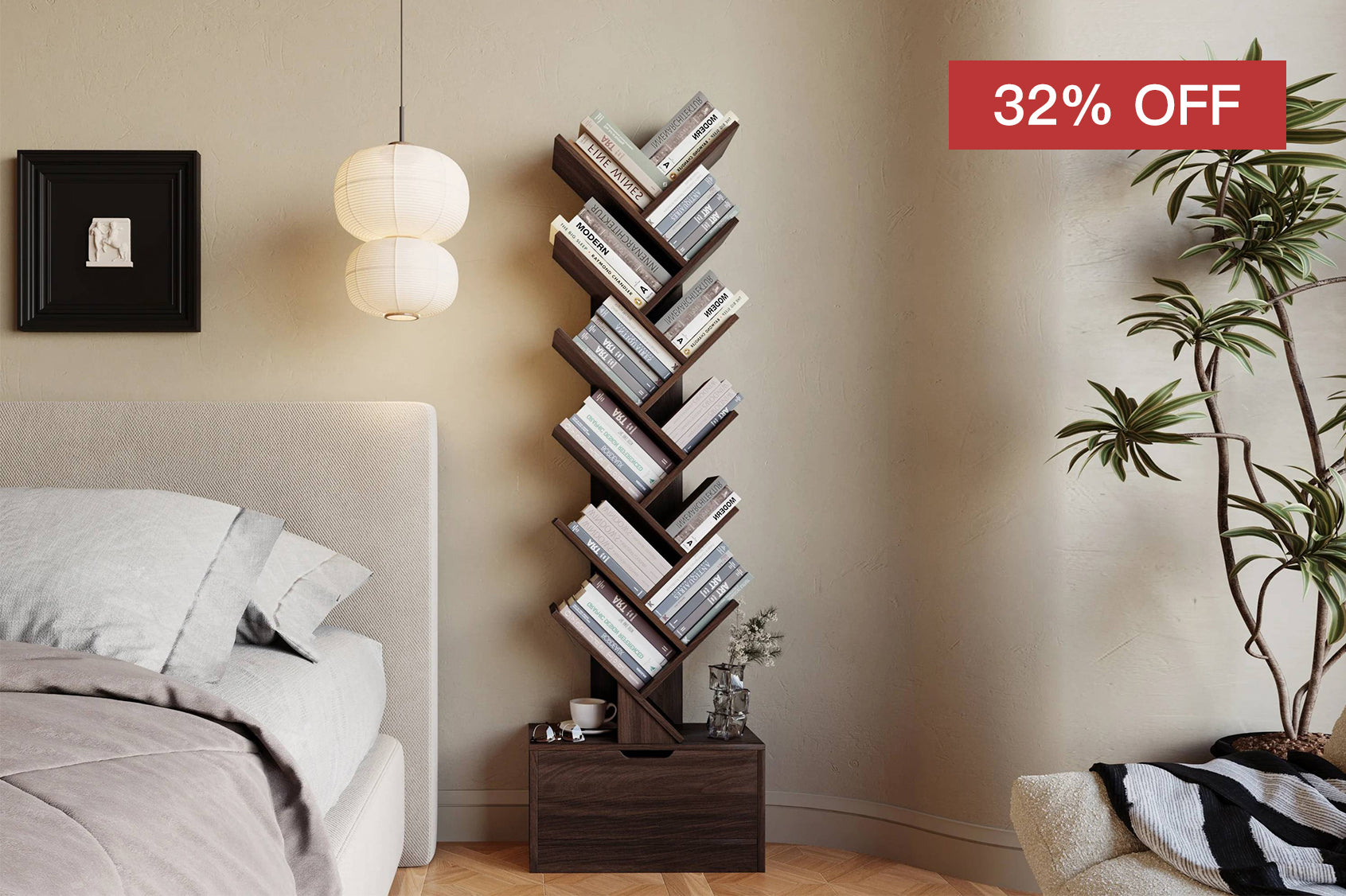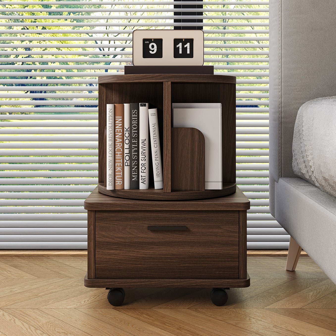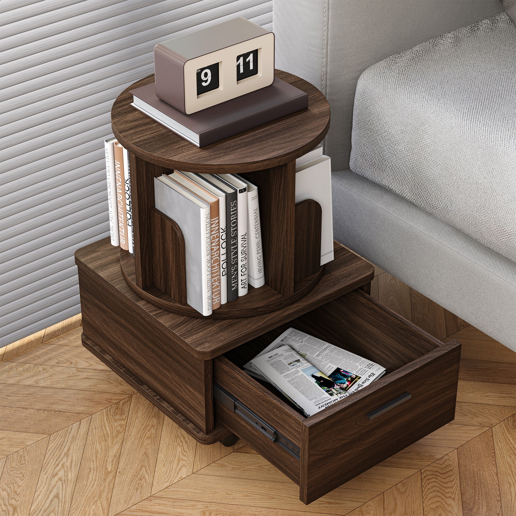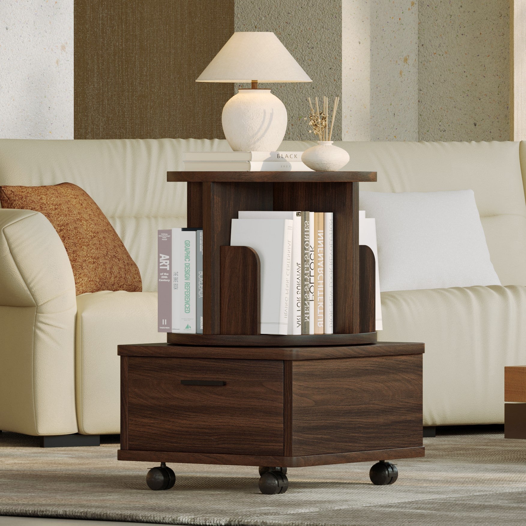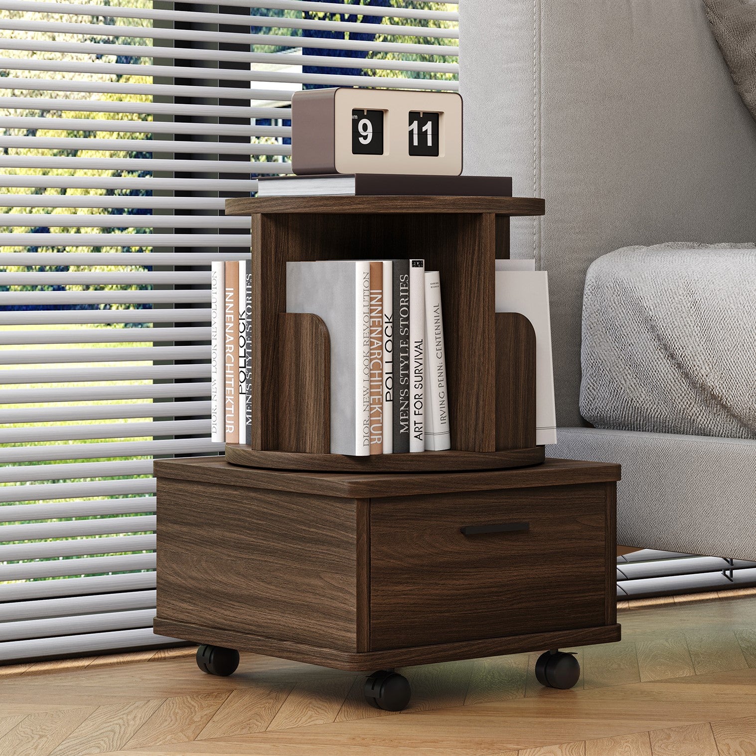 Yowosの回転式本棚は、縦格子の中空デザインを採用し、本、マンガ、CD、DVDなどを収納できるスペースを提供します。360度回転するデザインにより、従来の据え置き型本棚に比べて、どの方向からでも簡単に本を取り出せます。丸型の回転式本棚よりも角や縁を有効活用しているため、よりコンパクトに本を並べることができます。竹材を使用し、クラシックなウォールナット仕上げで、ミッドセンチュリースタイルの本棚です。子供用本棚、CDタワー、DVDタワー、拡張式本棚など、どんな用途にもお使いいただけます。お部屋をすっきりと落ち着いた空間に整え、究極のストレス解消本棚として活躍します。
