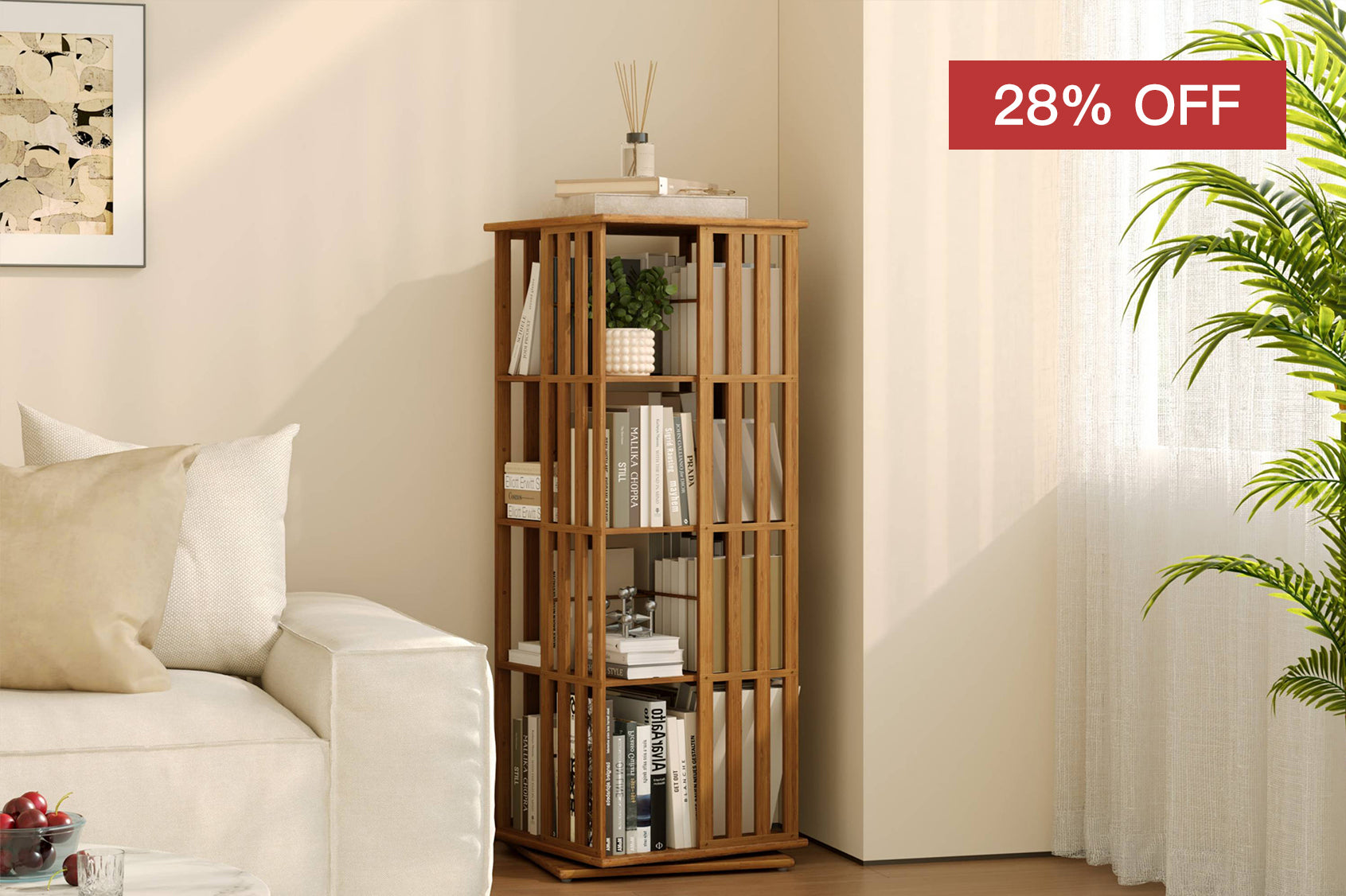 YOWOS Vortexシリーズ Meridian 360°回転式本棚 竹製 ナチュラル 4段