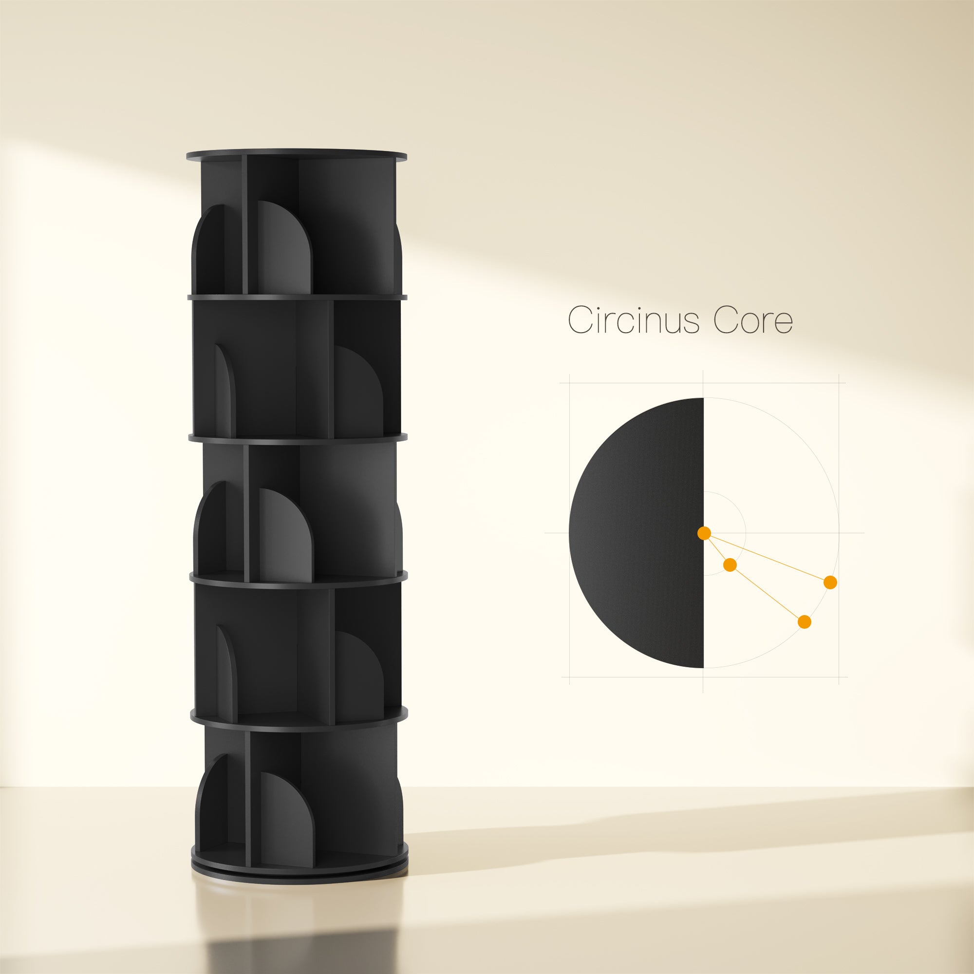 YOWOS Vortexシリーズ Circinus Core 360​​°回転式本棚 木製 ブラック 5段