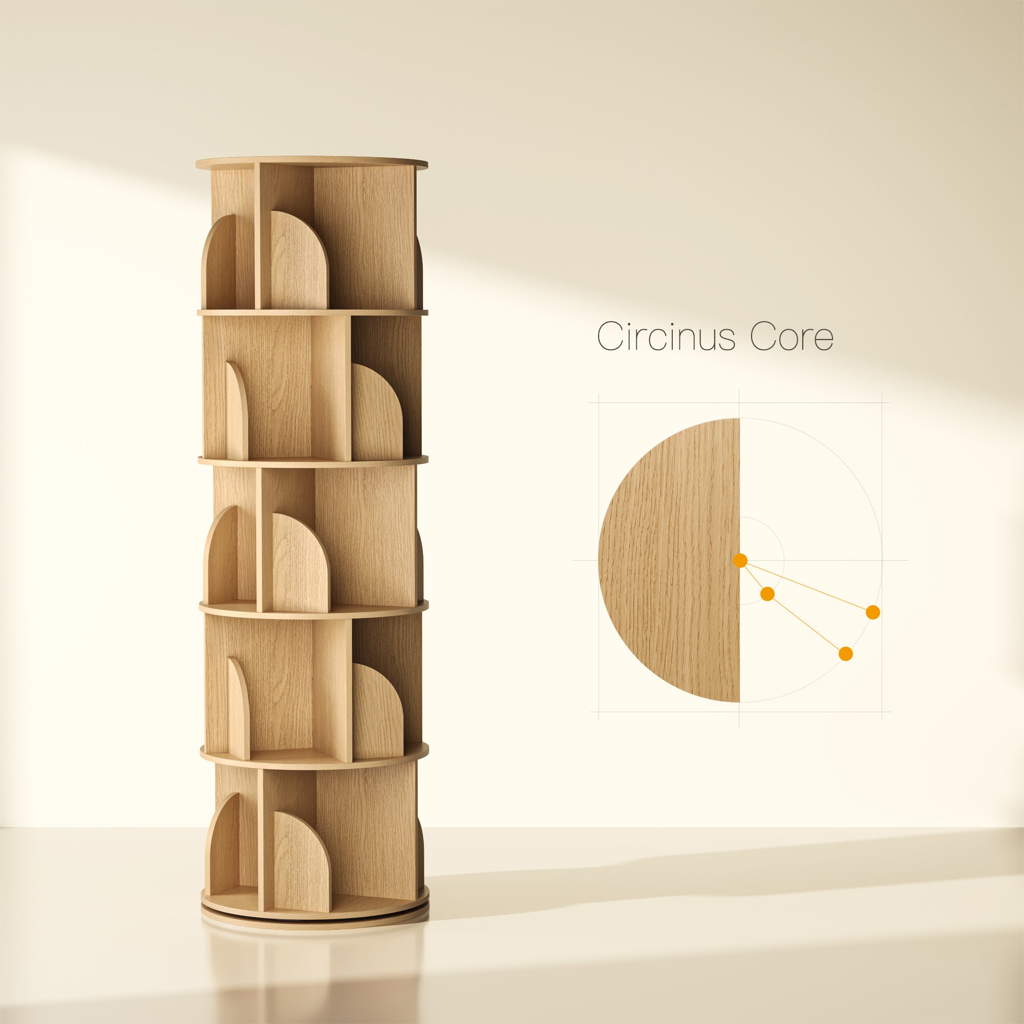 YOWOS Vortexシリーズ Circinus Core 360​​°回転式本棚 木製 ナチュラル 5段