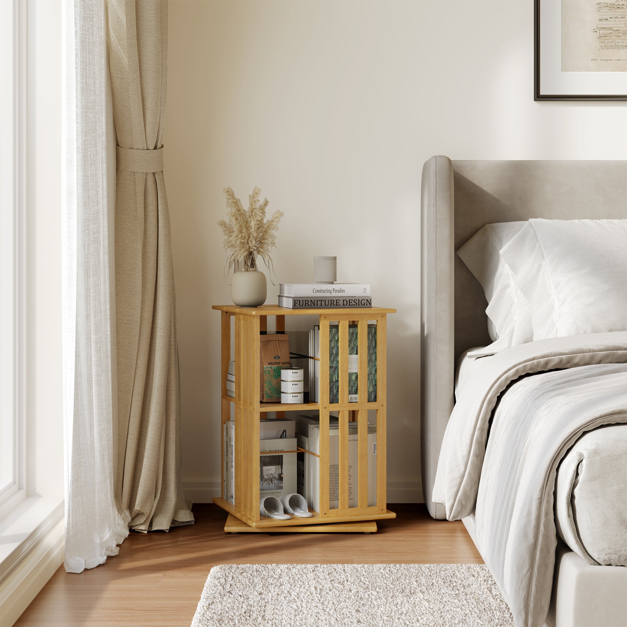 YOWOS Vortexシリーズ Meridian 360°回転式本棚 無垢材 ナチュラル 2段