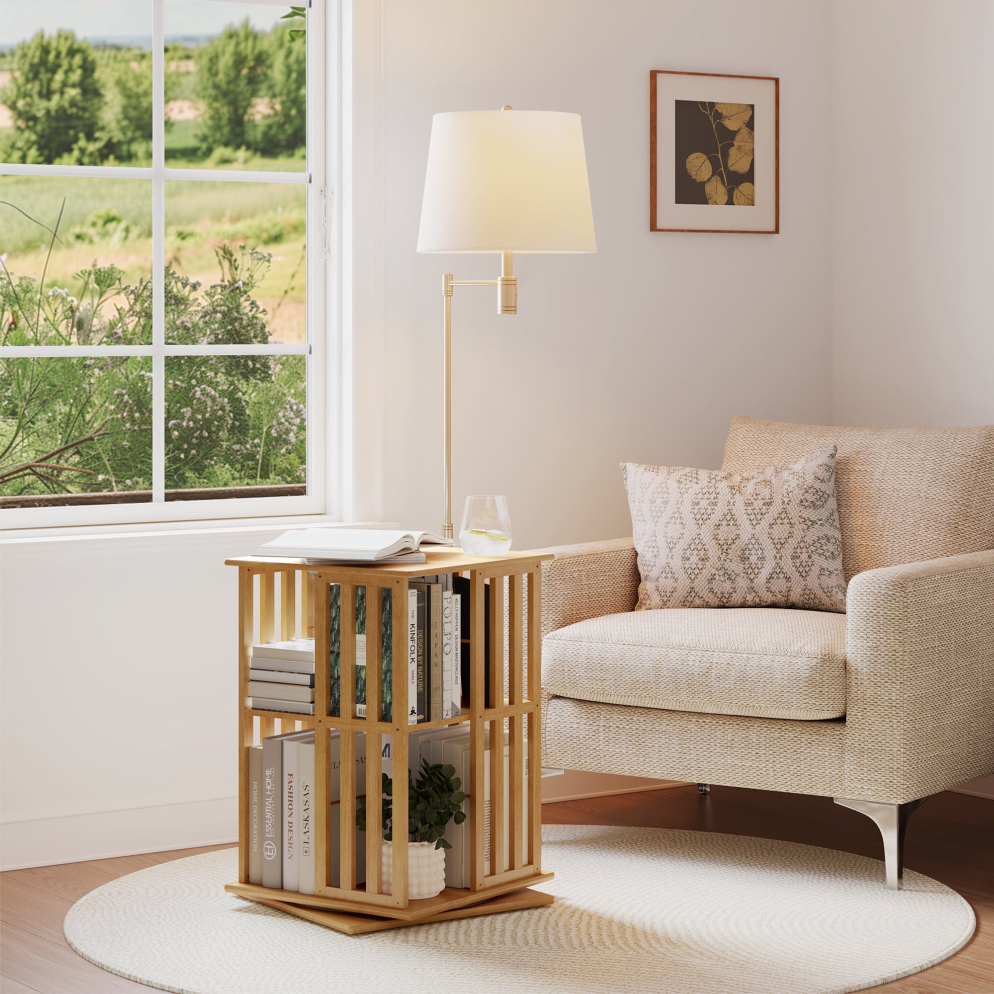 Yowosの回転式本棚は、縦格子の中空デザインを採用し、本、マンガ、CD、DVDなどを収納できるスペースを提供します。360度回転するデザインにより、従来の据え置き型本棚に比べて、どの方向からでも簡単に本を取り出せます。丸型の回転式本棚よりも角や縁を有効活用しているため、よりコンパクトに本を並べることができます。竹材を使用し、クラシックなウォールナット仕上げで、ミッドセンチュリースタイルの本棚です。子供用本棚、CDタワー、DVDタワー、拡張式本棚など、どんな用途にもお使いいただけます。お部屋をすっきりと落ち着いた空間に整え、究極のストレス解消本棚として活躍します。