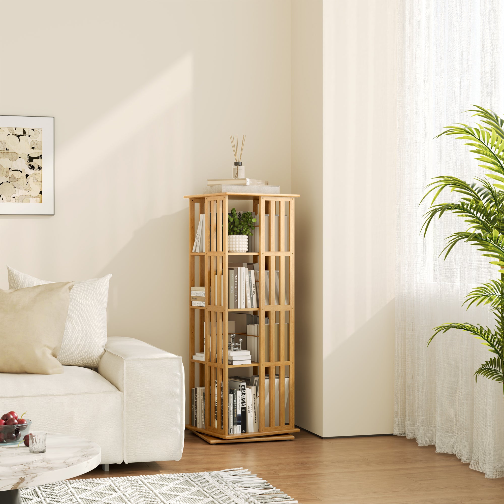 YOWOS Vortexシリーズ Meridian 360°回転本棚 無垢材 ナチュラル 4段