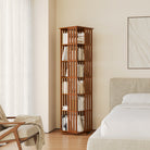 Yowosの回転式本棚は、縦格子の中空デザインを採用し、本、マンガ、CD、DVDなどを収納できるスペースを提供します。360度回転するデザインにより、従来の据え置き型本棚に比べて、どの方向からでも簡単に本を取り出せます。丸型の回転式本棚よりも角や縁を有効活用しているため、よりコンパクトに本を並べることができます。竹材を使用し、クラシックなウォールナット仕上げで、ミッドセンチュリースタイルの本棚です。子供用本棚、CDタワー、DVDタワー、拡張式本棚など、どんな用途にもお使いいただけます。お部屋をすっきりと落ち着いた空間に整え、究極のストレス解消本棚として活躍します。