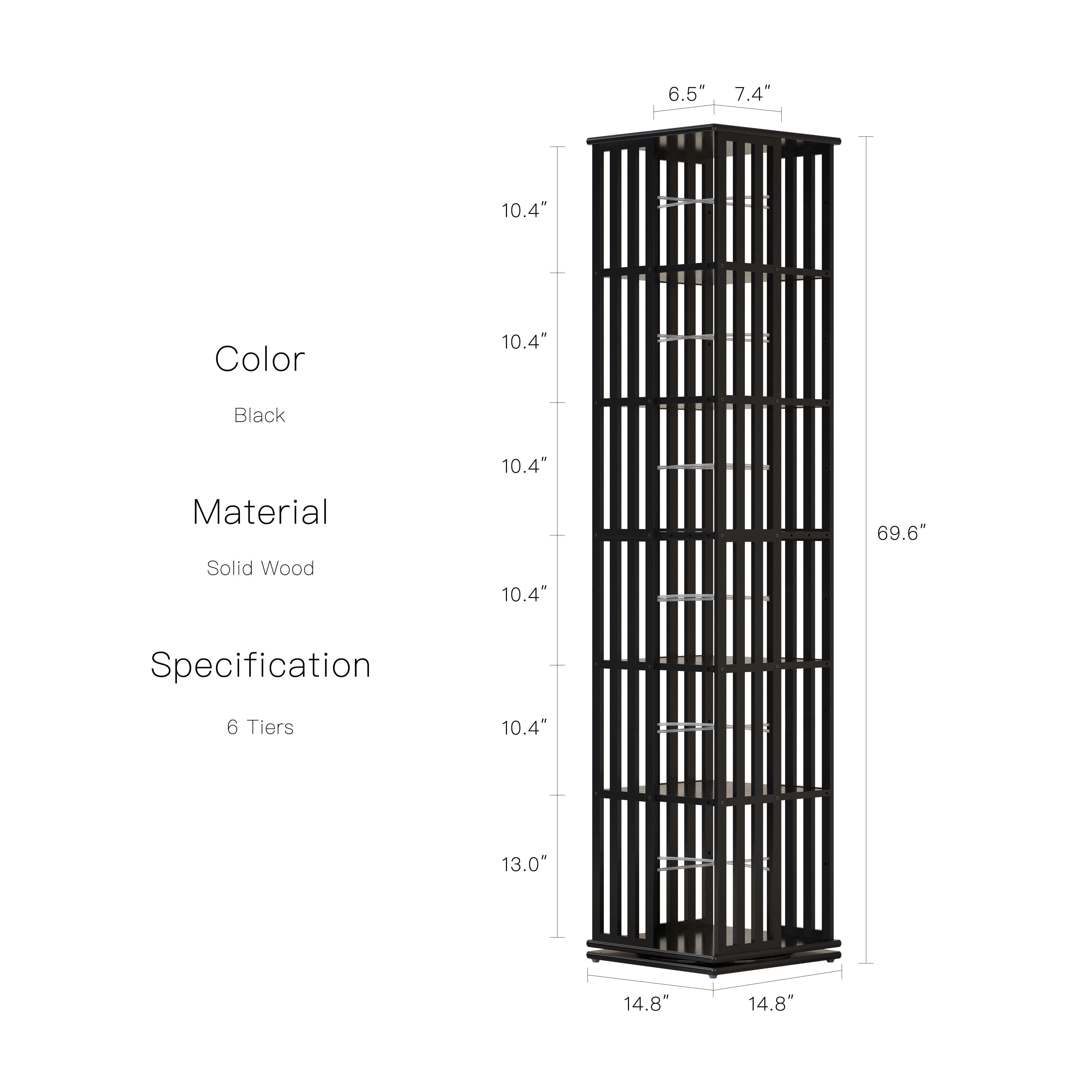 6 Tiers: 14.8"D x 14.8"W x 69.6"H
