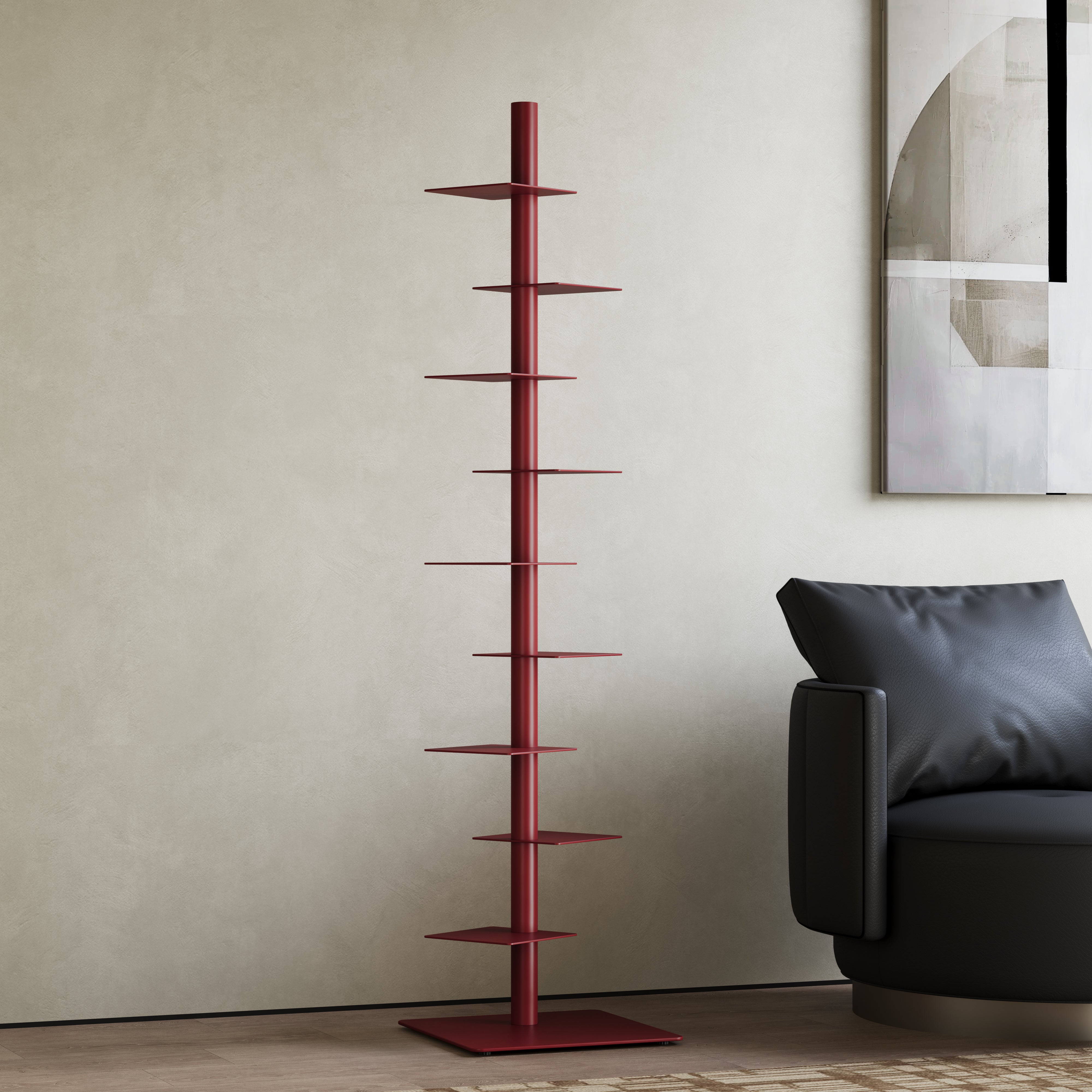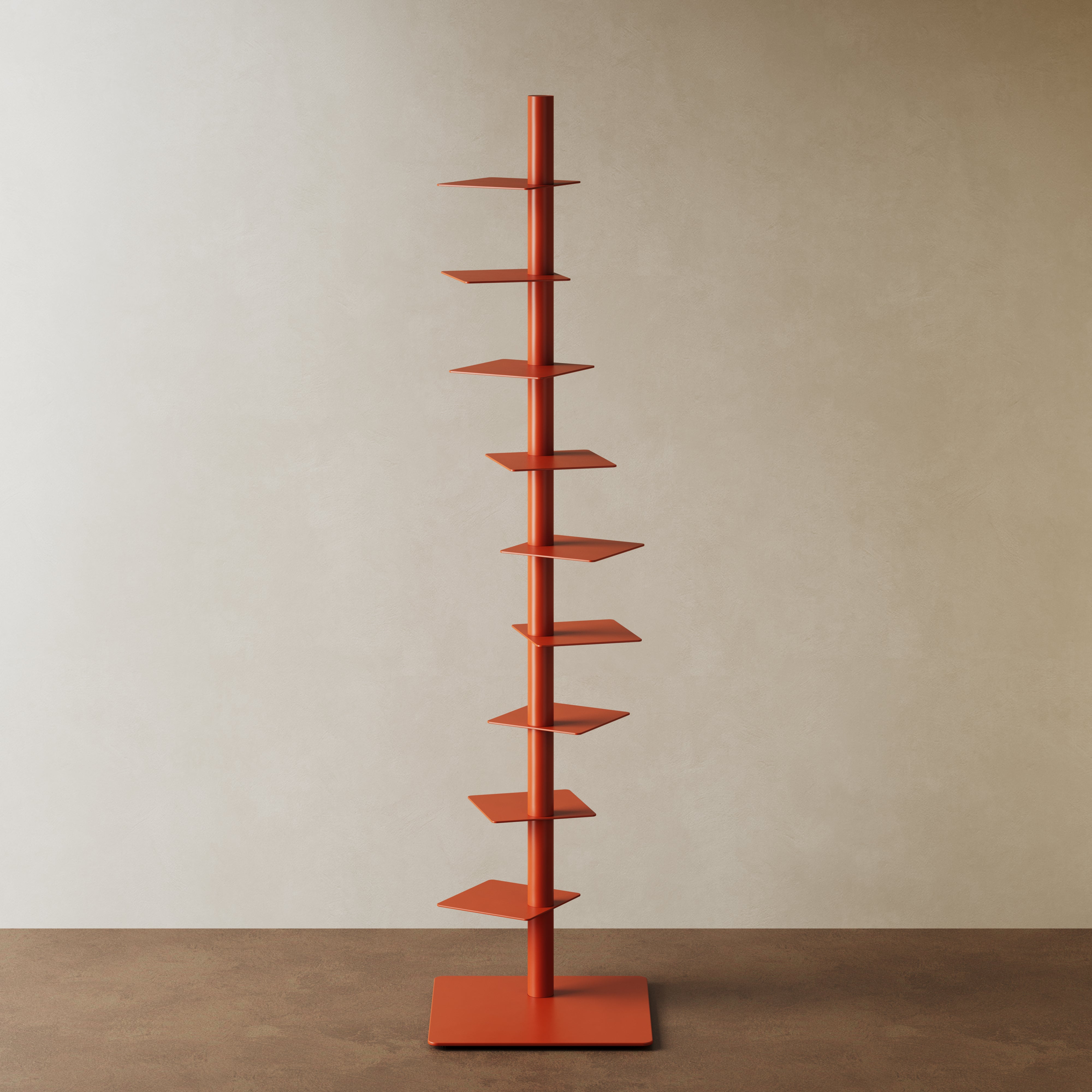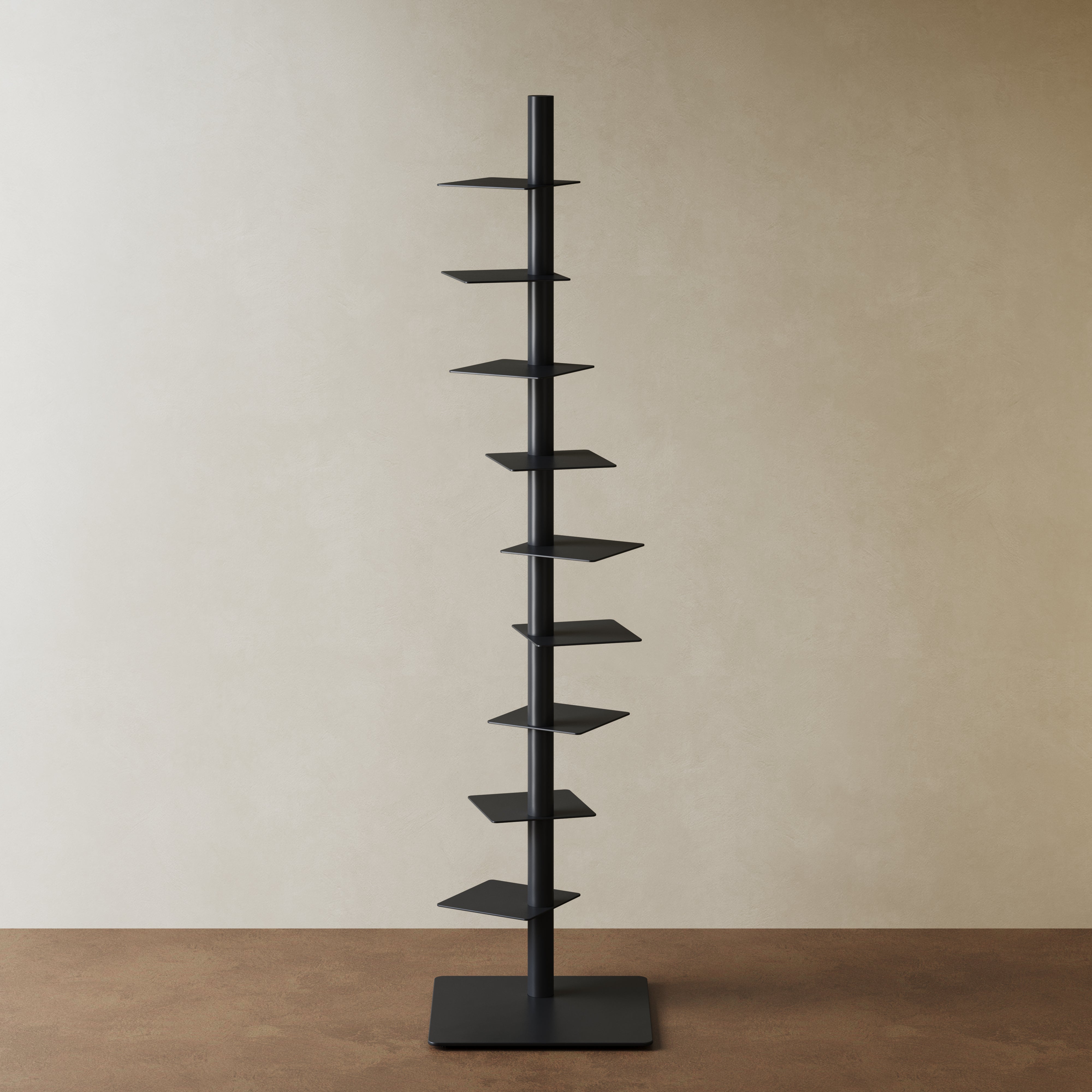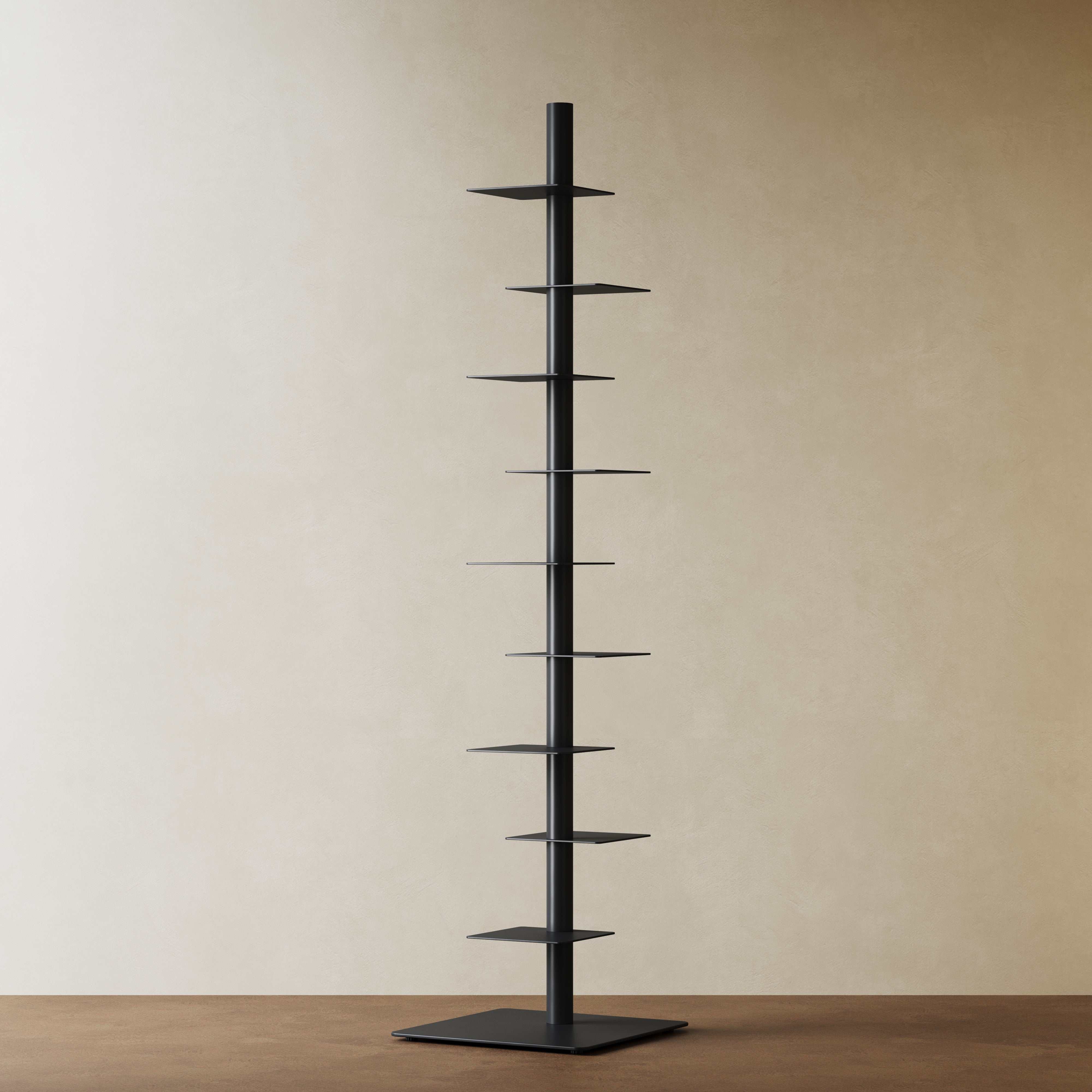 Inspired by architectural columns and the idea of visual subtraction, Atlas removes everything unnecessary—leaving only rhythm, balance, and form. Instead of occupying space horizontally, it rises. Instead of displaying furniture, it reveals objects. This is not a bookshelf. It is a vertical composition of knowledge.