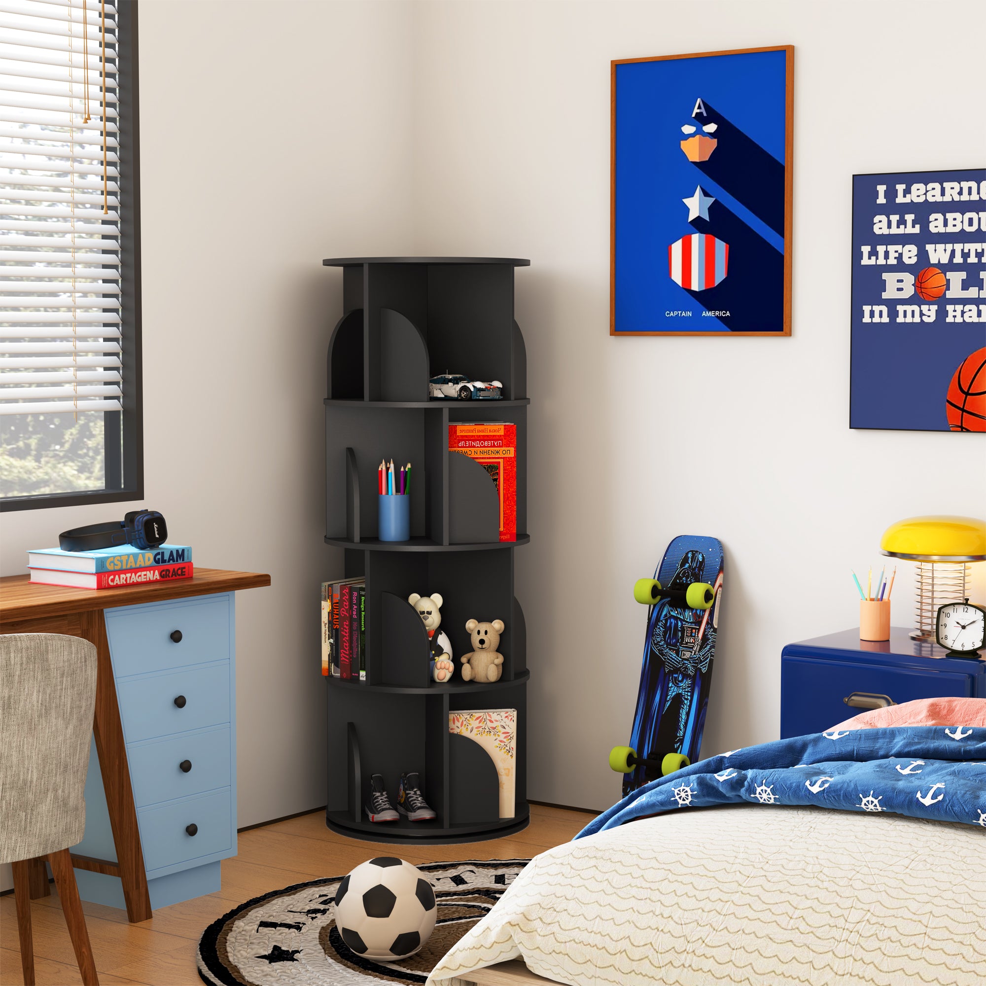 YOWOS Circinus Core 360° Rotating Bookshelf Wood Black 4 Tiers